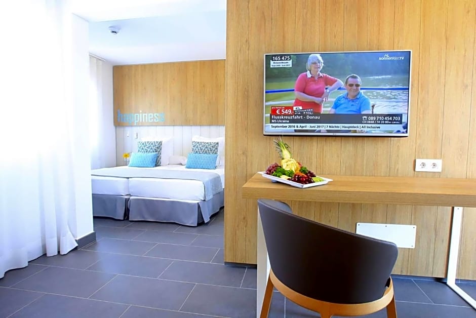2 BEDROOM SUITE 4 ADULTS+1CHILD is 452 square feet and includes either a double bed 131-150 width or 2 single beds 80-130 width plus a sofa bed.